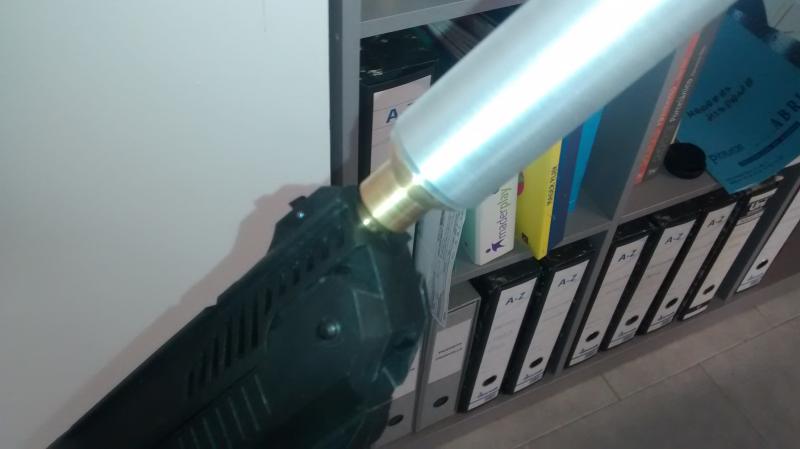 Decidí indagar y descubrí que el cañón viene roscado en su boca, por lo que he podido hacerme un silenciador que he probado antes de cenar.... Es una gozada, el precomprimido silenciado resulta adictivo.