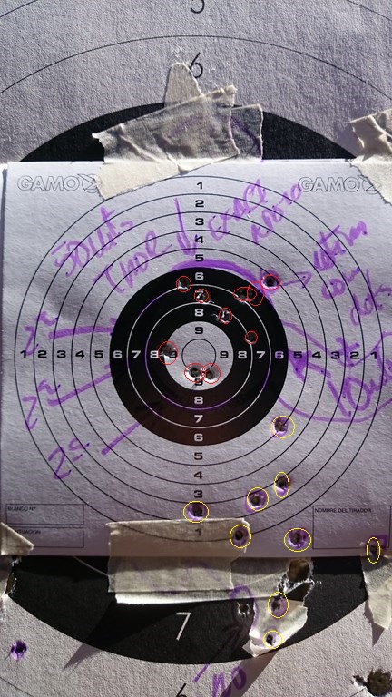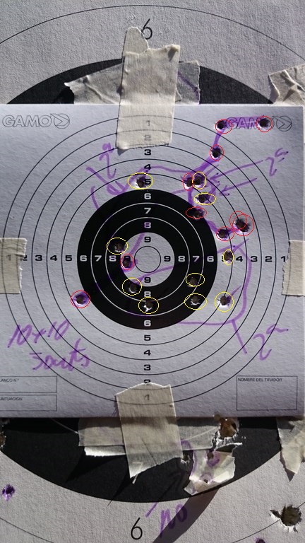 Primero he disparado con los Gamo ProMagnum y la cosa no ha ido mal, hay 1 disparo a la derecha que se me fue pero en general bien.