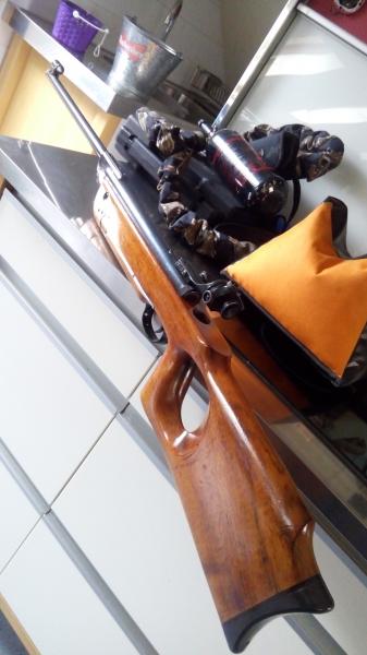 Subo unas fotos de mi Hw55 M (1955) de primera generación, aún sin el famoso gatillo récord, por lo que he investigado se montaban totalmente a mano con un riguroso control de calidad y tolerancias. Esta unidad la conservo en estado superviviente, no se ha restaurado, solo limpiado y engrasado la acción, limpiado e hidratada la madera, etc. Es destacable el diopter original y su peculiar funcionamiento pues para ajustar la altura es necesario aflojar casi del todo la pieza ocular, cosa que hasta que me di cuenta creía estropeado