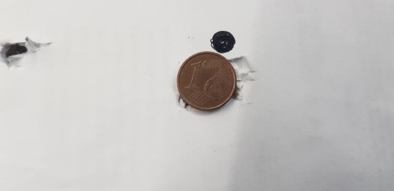 Edgun R5M long 6.35, un cargador completo en ese grupo, o lo que es lo mismo 9 disparos, distacia 60m. Malas condiciones de luz, a buen seguro, se podria mejorar el grupo.