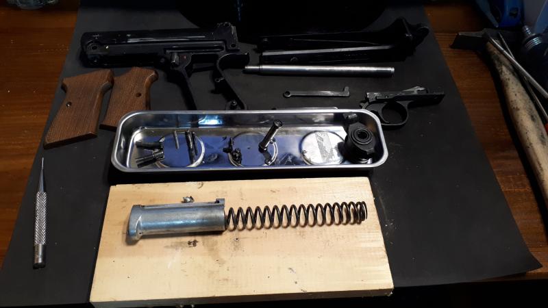 Creo que va a ser entre muy difícil a prácticamente imposible encontrar repuestos, es una pistola de fabricación algo antigua, mas de 30 años tranquilamente, y tampoco fue fabricada en un numero muy elevado.
