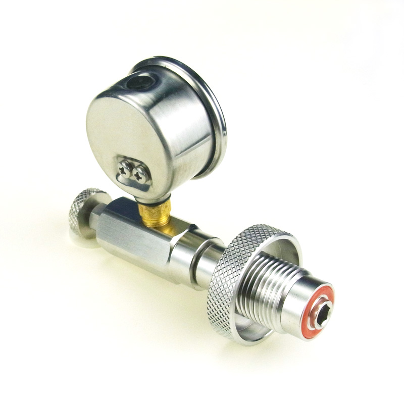 Para saber la presión que queda se puede usar un conector ciego o taponado como el del depósito del arma y con la válvula de purga cerrada el manómetro marcará la presión de la botella al abrir la válvula de la misma.