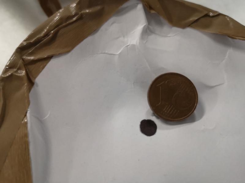 Por ser un modelo peculiar y que a mi personalmente me generaba muchas dudas, voy a mostrar lo que resultó ser la puesta a tiro de esta "miniatura", carabina recién sacada de caja, nisiquiera me tome la molestia de limpiar su pequeño cañón Lothar Wlather de 250mm, osea la versión corta de esta carabina. Diana a 35m y visor de 10x, energía 24j, balines barracuda Macht disparando a 264ms, que resultaron cerrar más los grupos que los jsb heavy, decir también que con los monster rediseñados a 250ms agrupaba igual de bien que con los HN. Os pongo el grupo que a mi me sorprendió para bien. Es una distancia modesta 35m, pero teniendo en cuenta el formato de arma y un visor de 10x, creo que da referencia de las capacidades de este guguete, y más tratándose del calibre 4.5 que a veces resulta menospreciado y más aún en estos conceptos de carabinas, solo veo pruebas en 5.5 y 6.35, y como he tenido varias Engun en 4.5 e de decir que siempre me han sorprendido en este calibre, resultan super precisas, disparar a 24j con pcp sigue siendo un placer.