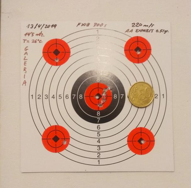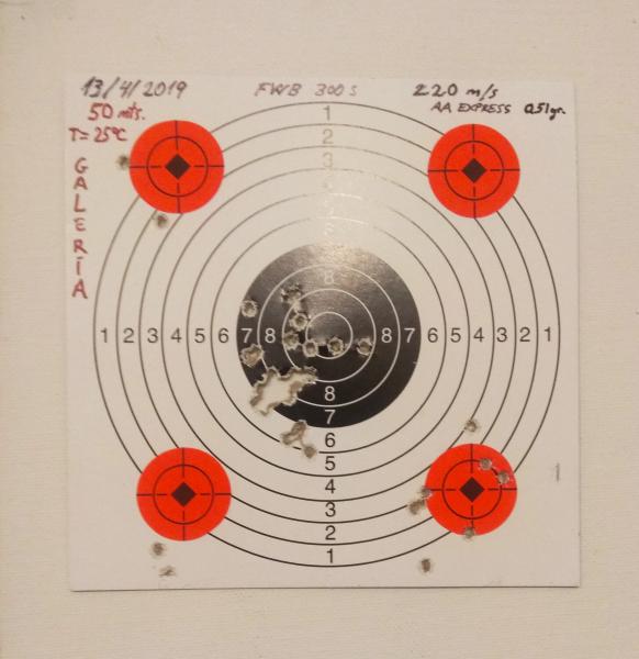 El producto estrella, que es la carabina, pues hace como 30 años que ya no se fabrica, una Feinwerkbau 300 S Universal, la mejor carabina de muelle jamas construida, y el tope de gama de aquellos tiempos, y que costaba de aquella, en la década de los 80, unas 120.000 pesetas, y un salario mensual decente, eran unas 25.000 pesetas....no es muy fácil de encontrar así por las buenas, y ojo, que la carabina de serie, era de 7,5 Julios, y aunque le metas el muelle tuning, no pasa de los 10 Julios, y lograr esas agrupaciones a 50 m, no es ninguna coña.....