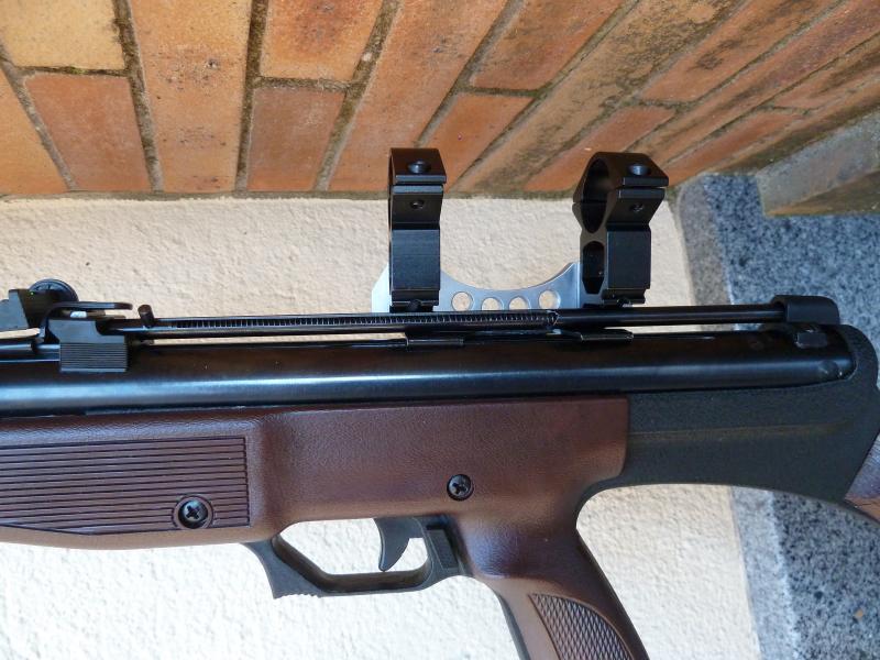 También pensé en su momento lo de sacar el cargador por entre los huecos centrales de los soportes, pero al tener ya el accesorio del visor paralelo a la recámara (hace muchos años que lo compré en una armería para colocar un viejo y sencillo visor Gamo 3x - 7x20 que se veía como el culo...