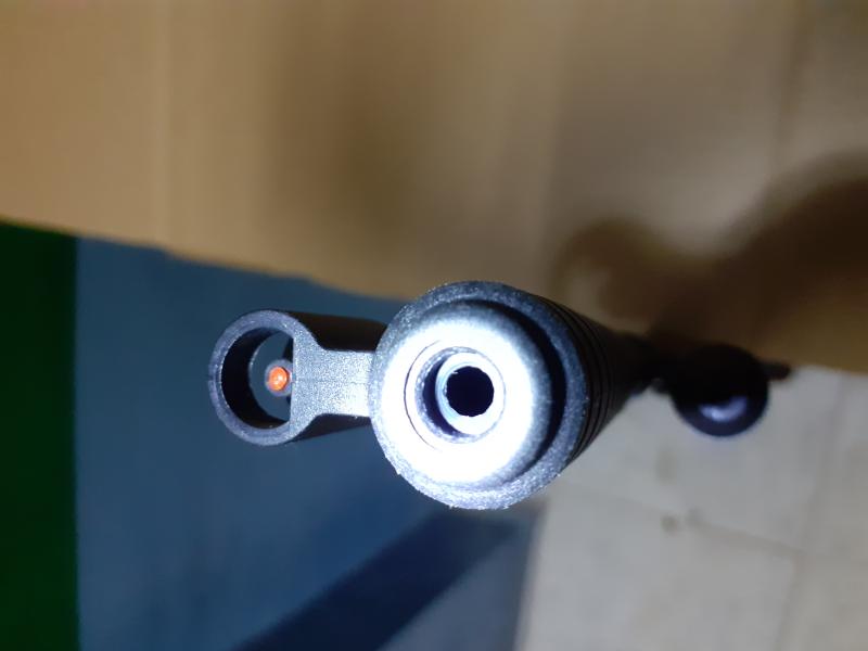 Poco más que añadir,solo que es candidata para un trabajo de refinamiento,porque estoy seguro que al menos con una bocacha de hierro de unos 190,200 gramos,se atenúa el salto de la punta del cañón.El visor será montado en otras,para comprobar que no esté roto.No puede ser esa disparidad de entre agujero y agujero,que me ha hecho imposible corregir el visor,porque a ver donde regula el tiro.