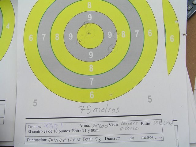 Además, para los que dicen que hace falta muchos julios para tirar a larga distancia, pongo esta agrupación de mi compañero Xabi en la última tirada de MLD.