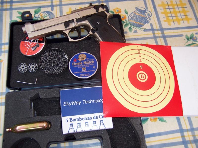 Aparte de la pistola tambien tengo 2 cajas de balines Norica, 100 dianas y 7 bombonas de CO2.