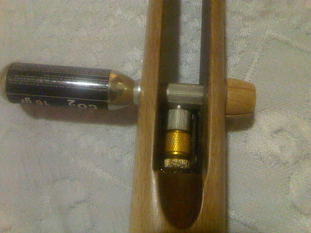solucionado el problema del compartimento del co2,como os conte se pudrio y no consegi por ningun lado otro,la arregle con piezas de bicicletas....1-racord de bombin,1-adaptador de bombona co2 con rosca y posivilidad de regular el flujo del mismo(son adaptadores para inflar ruedas de bicis)2-toricas y fija tornillos.