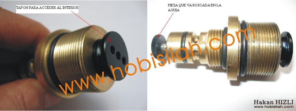 Ahora solo tienes que poner la aguja fina y seguir los pasos al contrario, como ves es fácil. Hecha un pelin de grasa de silicona en la junta de la aguja, y un poco de fijatornillos en la pieza que rosca en la susodicha aguja.