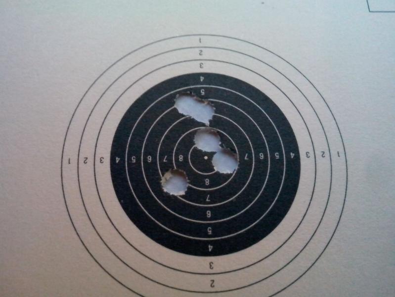 Hola, os quiero presentar estas imágenes de un par de dianas con cinco disparos cada una realizados en galería a 10m. con una Gamo Statical restaurada por servidor.