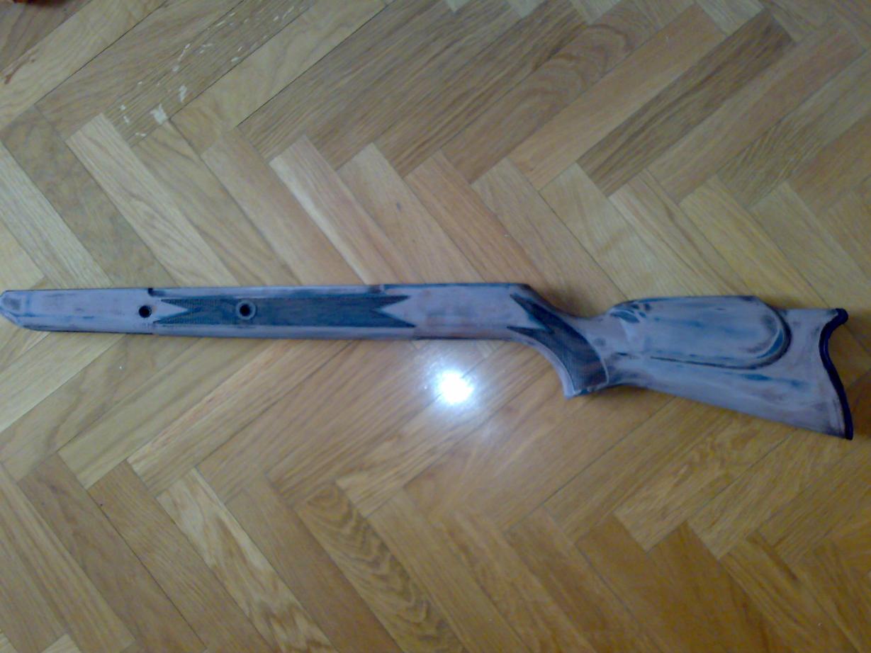 ya he empezado con la reforma de la Hatsan, he lijado la culata y la he dado imprimacion para plasticos para que la pintura agarre bien.