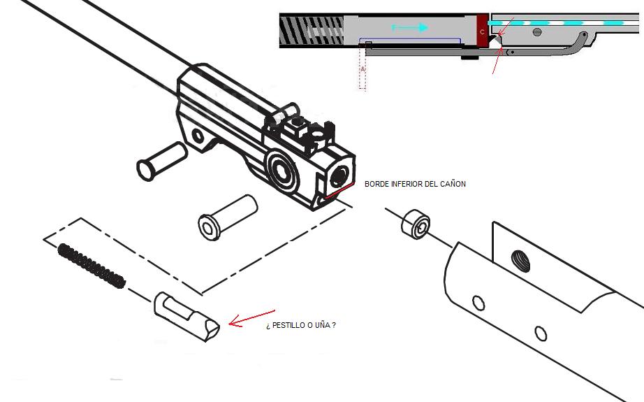 Si la carabina la compraste nueva de fabrica, quizás el problema és que por un error humano el agujero que aloja el muelle y la uña és demasiado profundo y por eso el muelle no empuja lo suficiente.