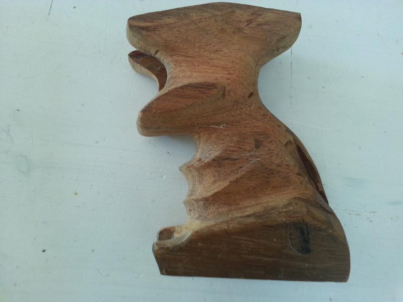 Hola a todos. Este verano me hice con una matchguns del .32. La cuestión es que soy diestro, pero mi ojo director es el izquierdo, y ademas para remate uso gafas. Como es lógico hasta la fecha he tirado con la derecha, pero claro, la postura, cuello, y sobre todo el angulo de la lente...eran un problema. Así que me dije..¿ y si tiro con la izquierda?...total no espero ser un tirador selecto. Así que me decido a preguntar y milagrosamente aparece en la armería, una cacha para zurdo, de mi talla, mas o menos. Bueno, la pruebo, sensación rara rara, y punteria pasable, pero para tirar con la izquierda no esta mal, pero lo mejor, ojo y cuello superelajado. Bueno así que decisión tomada, ahora soy zurdo en el tiro. Reconozco que me gusta el bricolaje, y me pregunto...¿ y si me hago la cachas personalizadas?....dicho y hecho, busco una tabla de madera tropical, dura y trabajable, mi gubia y mi formon. Pego tres tablitas con cola, y al día siguiente, aprovechando el sabado tarde me pongo con el tema. Y tras mucho ras ras y lija...aquí están las cachas !!!.... ¿Alguien quiere unas ??...jajajaja ¿Que os parece???