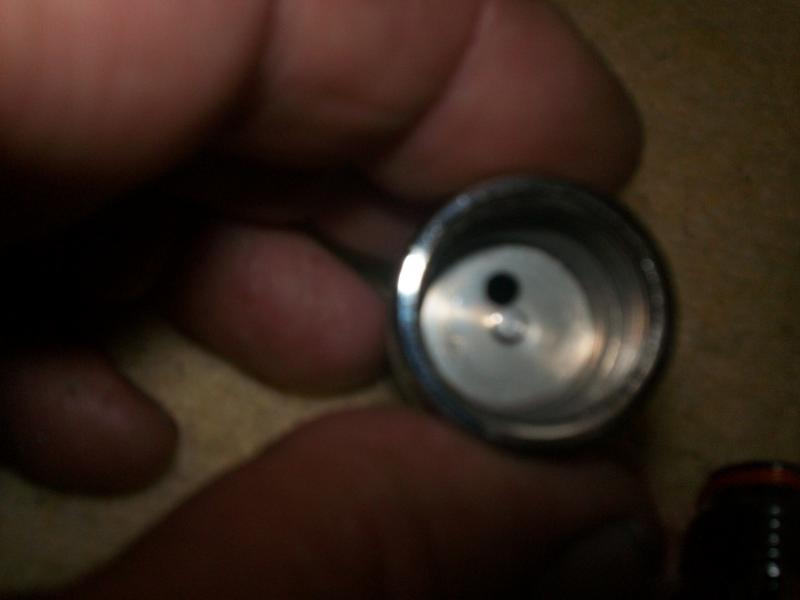 con el adaptador y regulador puesto al estar la botella mas distanciada de la entrada del cañon,no pega con este,en esta foto esta justo pero hay que tener en cuenta que la funda del cañon no es la suya es un milimetro mas gruesa,concretamente un tubo de cobre de 15,imprimado y pintado,ojo si la pones directamente en el tapon,si que pega