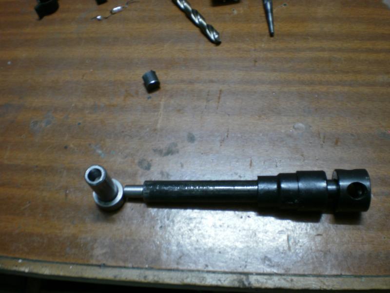 Según mis cálculos,con el muelle ya comprimido ( me voy a vasar en ensayo error) esta guía desliza sin problema por la ya fija de la propia carabina y no choca con nada,faltando 1cm para dar con el pasasor final que es el que fija todo el sistema gatillo,que es hueco por dentro.