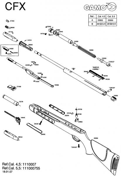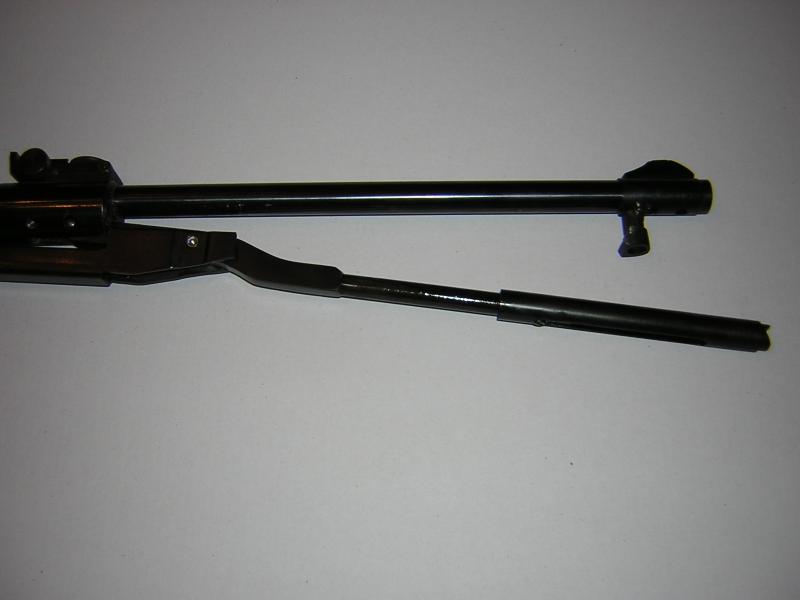 haver , cortar el cañon es facil al igual que la palanca , el problema biene que en la punta del cañon tiene un rebaje para acoplar las 2 piezas del punto de mira , aqui pongo una foto con el despiece , saludos