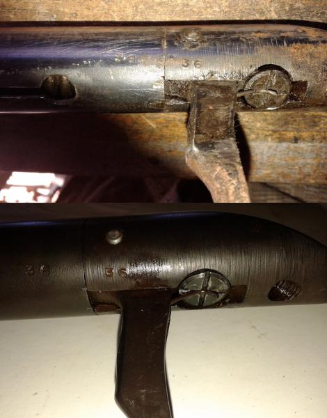 Al terminar de montarla, el primer susto: no cargaba el gatillo, cuando llegaba la uña del pistón, movía el gatillo, pero no llegaba a anclarlo... menos mal que antes de desmontar nada, pensé un poquito... le ajusté el tornillo que se ve en las fotos donde apoya el muelle del gatillo, y arreglado. Dejo algunas fotos del antes y después de algún detalle de la restauración.