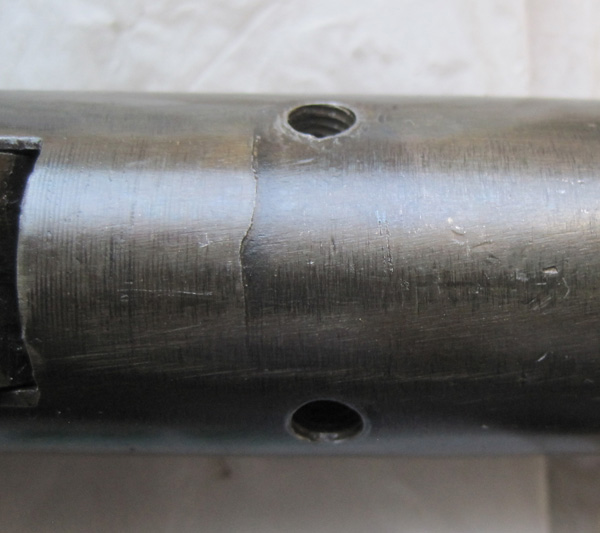 El pasador que retiene el cassete de disparo, muelle y todo por detras... doblado, al igual que sus alojamientos en la camara de compresion.