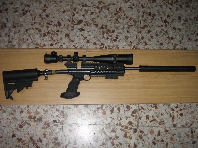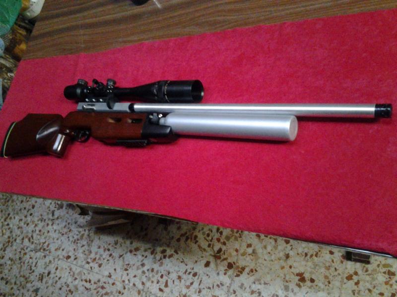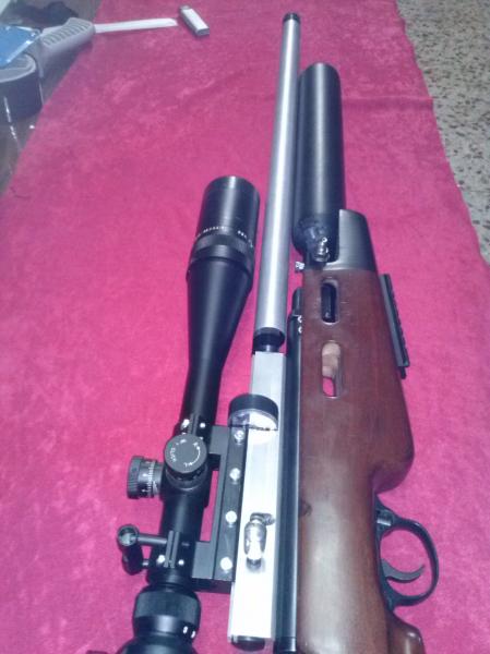 unas fotos mas del sistema multitiro del qb-79 pcp con cañon y sound barrel de BSA R-10, le he pulido el tubo , quizas haga lo mismo con la botella.....