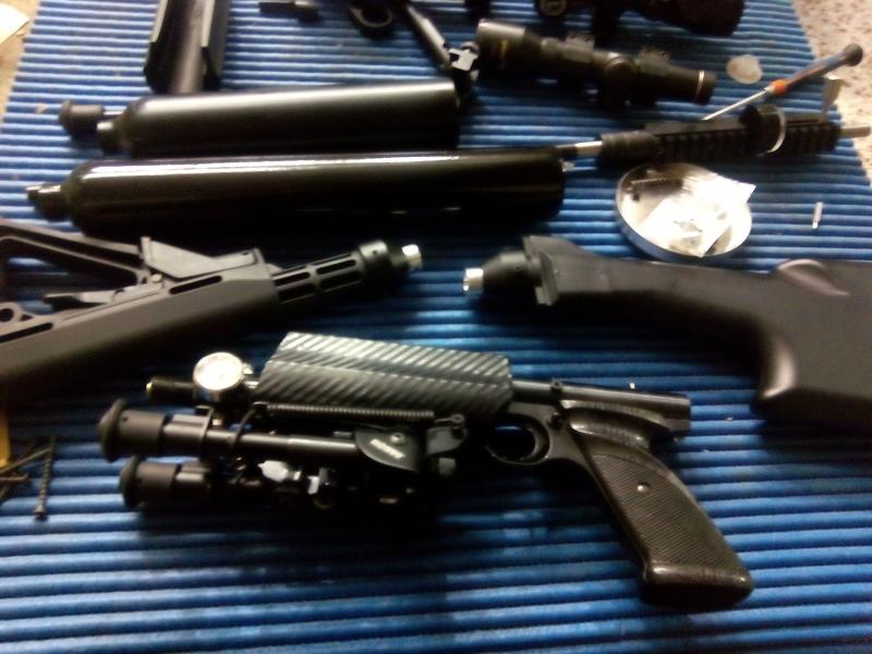 LOS CAMBIOS. le he cambiado la botella de 200 cc por una de 400 cc, el culatin tambien le puse otro y le cambie el breech de acero monotiro por otro made in USA multitiro con cargador de marauder y sound barrel.