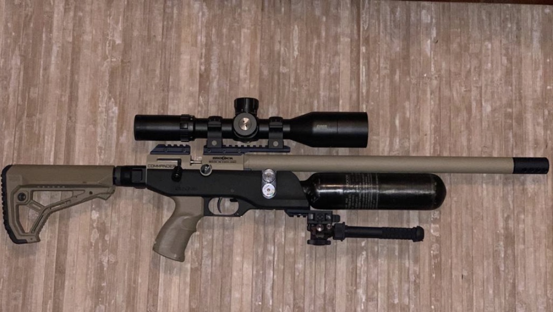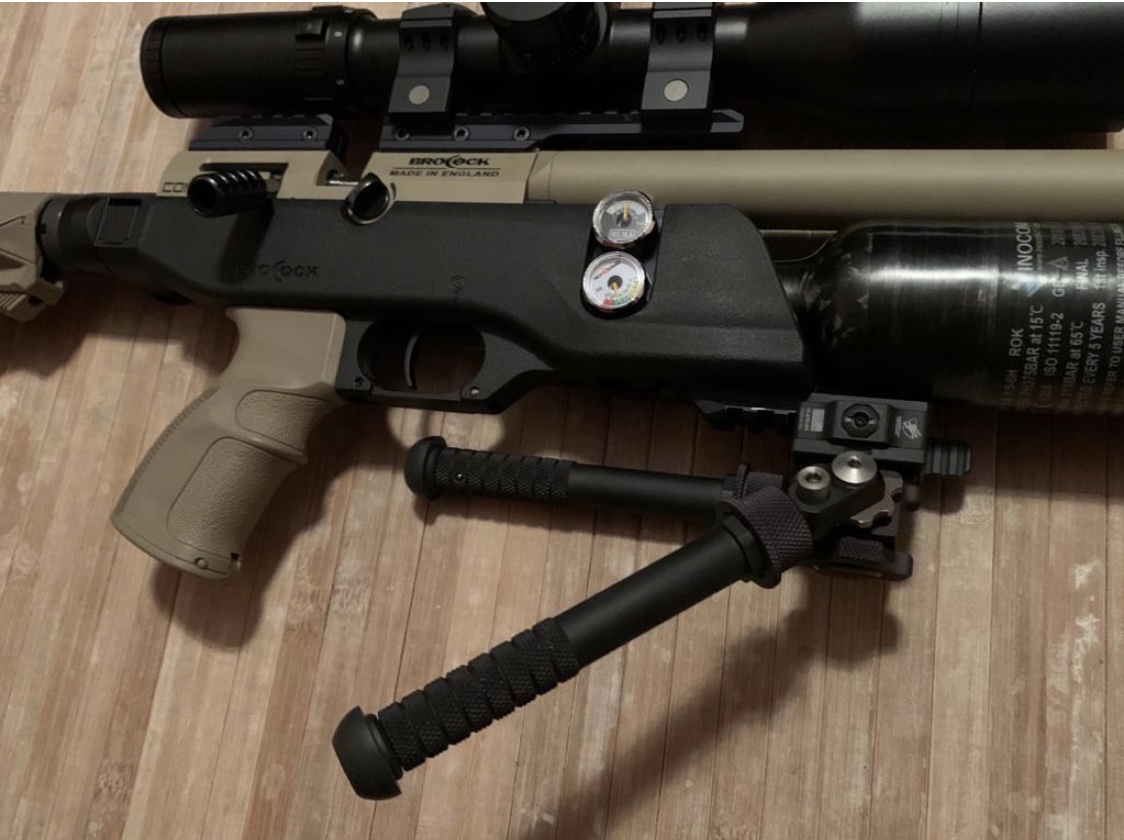 -Brocock Commander del calibre 6,35, regulador Huma, con recubrimiento Cerakote, depósito de carbono de 480 ml y culata tanto extensible como abatible.