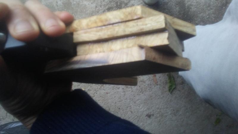 He colado las tablillas de madera y las estoy moldeando con lima y lija.