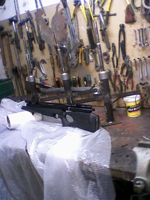 hola . como muero de ganas por tener una carabina bullpup y la economia esta como esta! ,pues he cojido mi at 44 y la sierra y la estoy liando os envio unas fotos de como estoy intentando hacer la transformacion ,aprovechando la culata de plastico.gracias