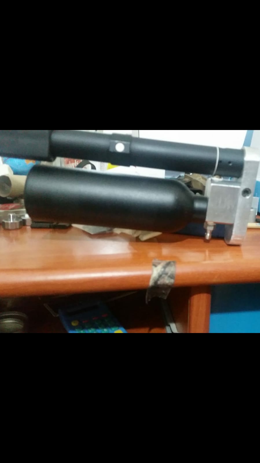 Te quedo muy bien . Podrías explicarnos como has hecho el brico , que botella , con qué regulador , que pieza utilizaste para unir el regulador a la pistola , bípode , silenciador y si la has probado en serio como va ? Perdona por tanta pregunta , pero tengo curiosidad . Gracias de antemano compañero.
