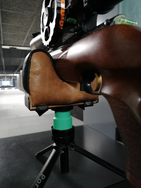 Como el apoyo sobre un tripode para el rifle lo veia un poco escaso, le he fabricado uno nuevo en piel.