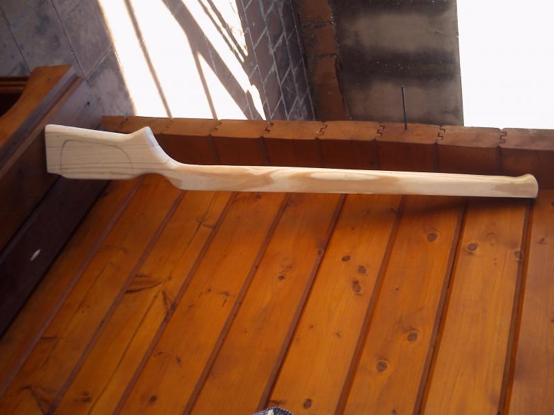 hola, bueno yo mientra hacen la culatiya me estoy haciendo mi propia chapucilla con madera de pino regala. no es facil la realizacion de la culata es muy larga y tiene muchos detalles ,bueno aqui pongo unas fotillos del proceso de la chapucilla hispania (me gusta este nombre)