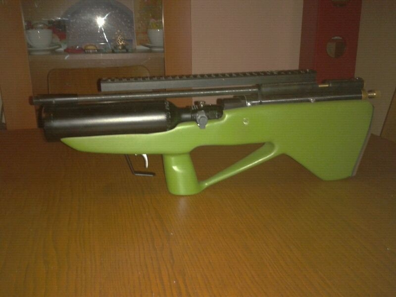 ESTA ES LA MINI BULPUP CON 55 CM. DE LARGA Y CON CAÑON DEL .25 , ES LA ULTIMA TRANSFORMACION QUE HE HECHO ESTA TARDE, ADAPTANDOLE UN MODERADOR QUE CIERTO ES NO LA DEJA MUDA PERO QUE PARA DONDE YO TIRO ES MAS QUE SUFICIENTE Y ESTE CAÑON QUE TENIA MONTADO EN UN QB, EVIDENTEMENTE PROVADO Y SABIENDO DE SU BUENA CALIDAD.