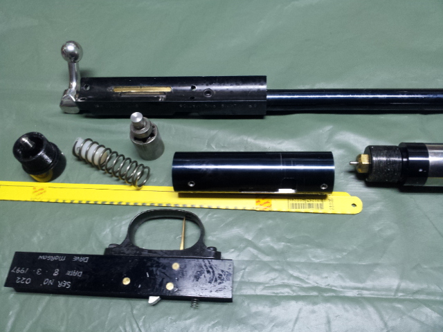 hola . mision cumplida , desmontada , cortada 13 cm. deposito y cañon , el deposito me lo ha roscado el amigo " juanjo " , que ya me rosco en su dia , el de la hatsan at 44 metal amorfoseada , me a quedado un conjunto muy recogido , justo lo que yo queria 79 cm. , es mas corta que la edgun short . esta es la foto del estado original y en el siguiente post cuelgo ya las definitivas .las sierras me pierden !!!