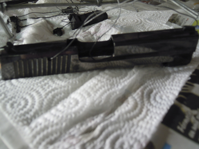 Como dije también en un principio, este pavonado no vale para cierto tipo de armas, como escopetas o armas antiguas, que tengan partes, piezas o soldaduras de material no férrico, pues desaparece en la cubeta.