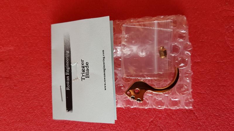 bueno, al no ser posible ajustar el recorrido del gatillo , retrasando su posición, lo primero que pensé, fue en modificar la culata, pero la verdad es que salía muy caro. luego me acordé de rowan engineering, que fabrica accesorios para diferentes modelos de carabinas, y por suerte , tiene tres tipos de disparador para el gatillo rekord.