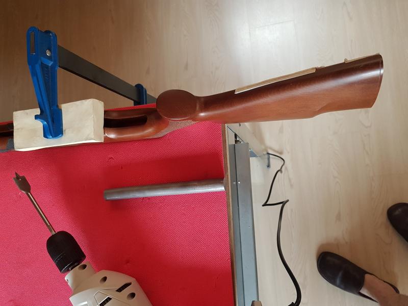 totalmente de acuerdo, como se aprecia en las fotos, la carabina fue lastrada mediante pesos sujetos con cinta americana y probada a fondo, antes de realizar ningún taladro en la culata. Solo al comprobar que efectivamente mejoraba la precisión al aumentar el peso se procedió a instalarlos definitivamente