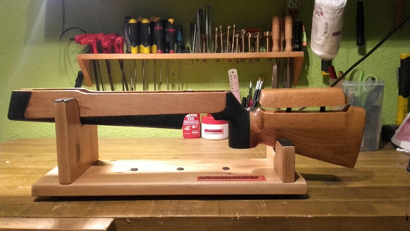 Para probar con una tablilla, tendría que ser de la misma madera que la culata, haya o nogal.