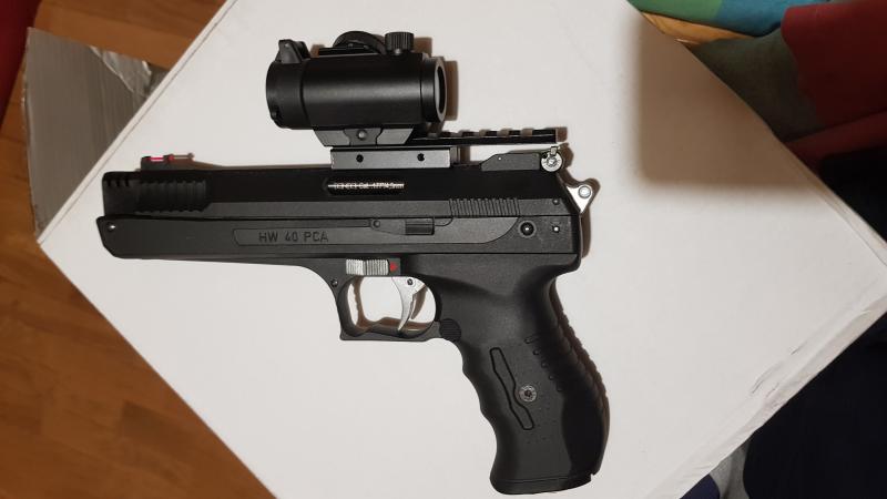 Hola, es un chino con punto rojo de 2 moas, muy barato, menos de 20€, no es holográfico por lo que la pila 2032 de botón dura una barbaridad, va muy bien pues tiene 11 niveles de brillo, que va muy bien para según luz ambiental tengas, a menos luz menos nivel de intensidad, y viceversa, así el punto siempre se ve muy bien. Es este que inserto enlace a continuación, de los 4 que hay debajo del precio, el 1º de la izquierda, ahora está en 18,68 €