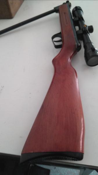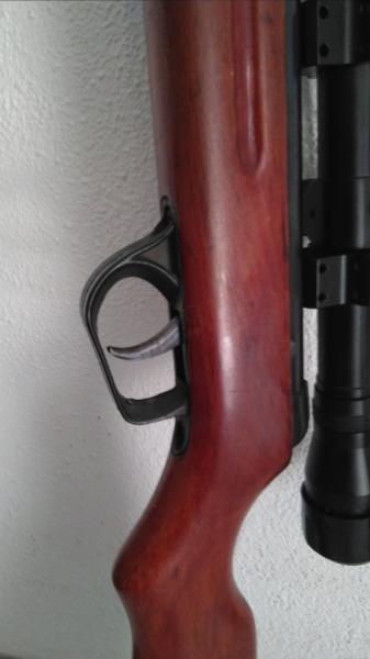 Estas fotos las tengo de recuerdo ya que se me rompió el muelle y al abatir el cañón, se rajo toda la culata, esta carabina lleva dos bielas y el esfuerzo se ejerce sobre la culata, por lo que con mucha pena paso a mejor vida y me deshice de ella.