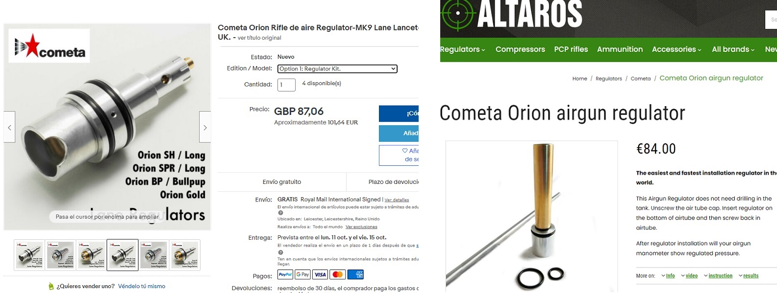 Actualmente en Cometa si les preguntas que debes hacer si quieres regularla, te dicen que acudas a tu armería que ellos se encargarán de tramitar el traslado de la carabina a fábrica donde te instalan el regulador. No te dan presupuesto, para eso te remiten a la armería. No remiten las piezas para que te hagas tu la instalación.