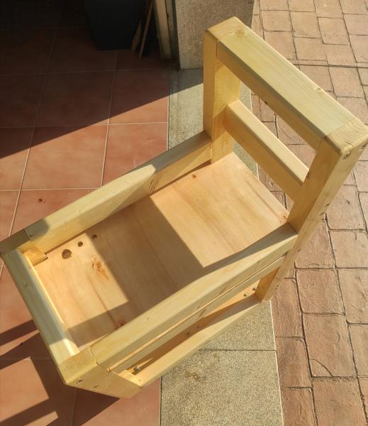 Material utilizado: listones de 7x4 cms, contrachapado de 2 centímetros y cuatro ruedas giratorias con freno.