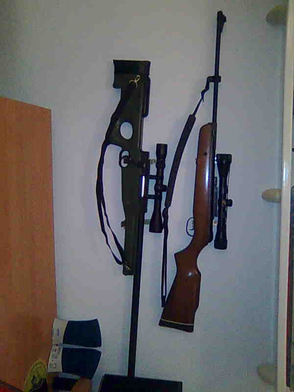 yo tengo dos rifles colgados y sale barato: vas a los chinos, compras dos escuadras pequeñas, y las pones. Hay va una foto: