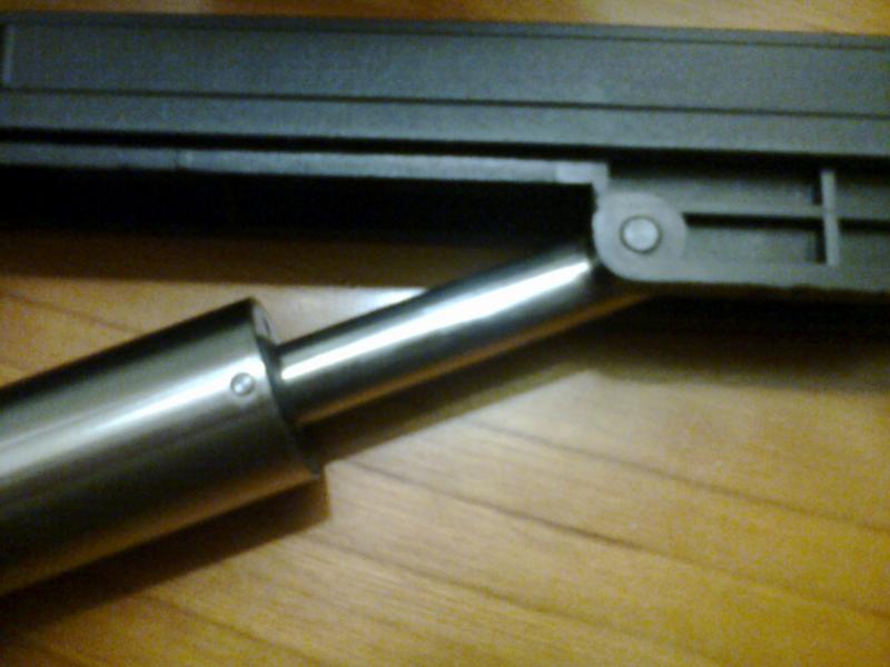 Hola, perdona mi ignorancia pero no capto lo que me quieres decir, aquí mando dos fotos donde se ven los susodichos pasadores que no consigo sacar. Son el que une el vástago al armazón superior del arma y el que une el vástago al cilindro.