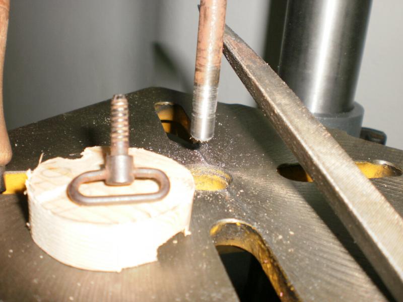 Hola,aqui os pongo un brico bien sencillo,sobre todo para los que andamos con las Vintage.A quien no le ha llegado o se le ha perdido una anilla de la culata del porta correas?pPartimos de hierro macizo de 8mm,puede ser mas o menos grueso,a gusto.Lo enganchamos al taladro,y no hay mas... unas limillas y le damos forma.