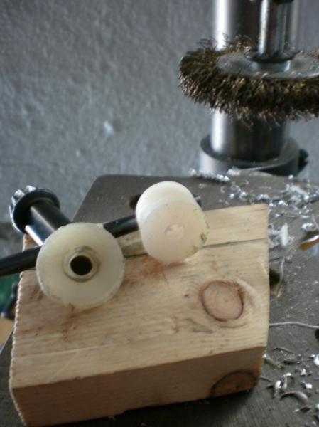 Es más o menos la idea que tengo, pero no se dónde encontrar teflon o nylon en barra, o arandelas de ese grosor/diámetro.