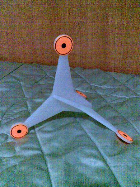 PD: Me gusta éste tipo de diana porque la pones en cualquier lado y siempre está en pie. La idea es hacerlo en aluminio y probar, pero primero lo haré con la tablilla de los chinos de plástico ó nylon, parece muy resistente. Habrá que probarlo.