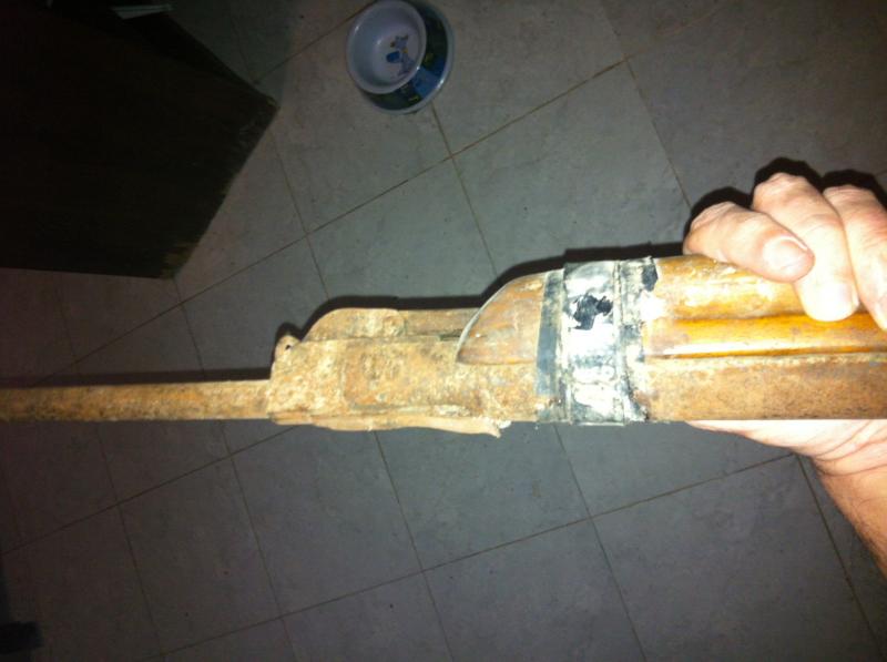 Se que es del 5,5 no tengo mas datos, y que esta carcomida, empezare el proceso de tratamiento de carcoma y seguiré con el del oxido, espero que en este proceso salgan a relucir las leyendas, pero mi ansia por saber que tengo en las manos me ha llevado a escribir.