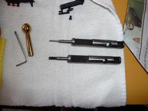 Arriba el cañon del 5.5 con la ranura para pasar el tornillo que aprieta el ocho. Abajo el cañon del 4.5 sin la muesca.