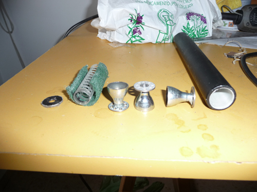 Al soporte, al ocho, ya le lavé la carita, lo pulí un poquito, le dí con pintura mate y lo volví a pulir para quitarle un poco de la textura del spray, y queda bastante decente. Aún sigue con su tornillo provisional pero ya no parece Frankenstein.