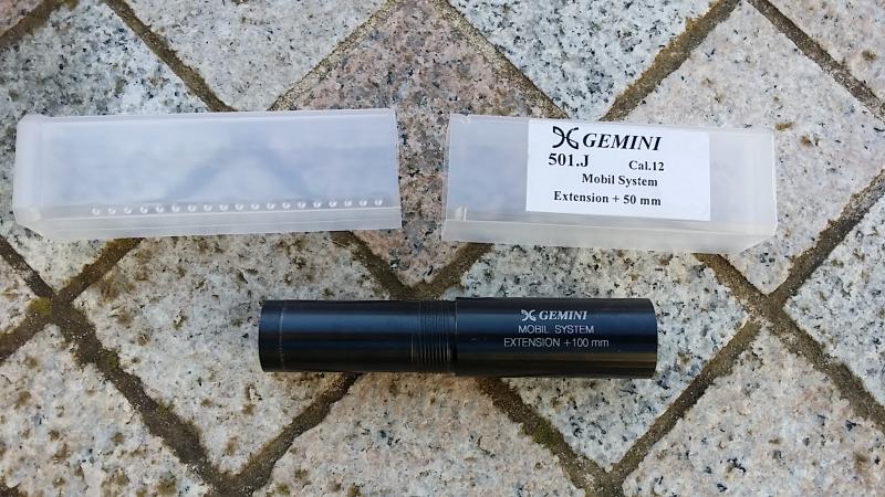 Extension gemini de 5 cms para todas las escopetas del grupo benelli, beretta, franchi que usen el sistema mobilchoke. Que es el paso de rosca mas comun. La extension permite alargar 5 cms el arma pudiendo roscar los chokes en el otro extremo. Esta sin estrenar. 60 eur portes incluidos a la peninsula.